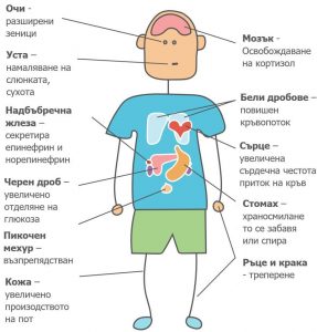 Това е илюстрация, показваща процесите, които се случват в различните органи по време на стрес: